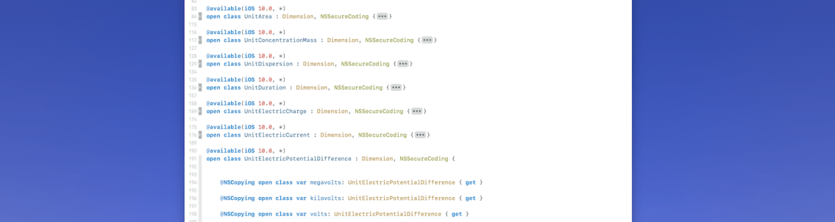 I was looking at formatters provided by Foundation framework and this time I would like to put some attention on MeasurementFormatter. Like the name says, it is used for creating localized strings of some sort of measurements. Measurements are represented by a generic struct Measurement where the generic UnitType describes the unit represented by it. Apple provides an Unit subclass Dimension which in turn has a many subclasses on its own. At the time of writing there are 22 dimensional units available with each of those having multitude of related units. For example, UnitDuration provides units for seconds, minutes, and hours. The full list of Apple provided dimensions are available in a table here: Dimension.