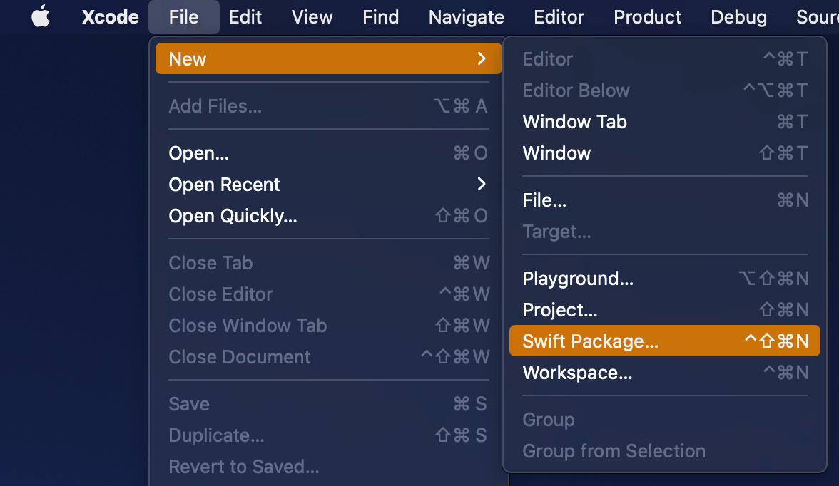 Open Xcode and select “Swift Package” item from the File > New menu. We’ll set the name of the package to “ColorContrastRatio”.